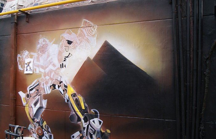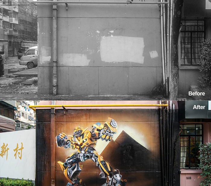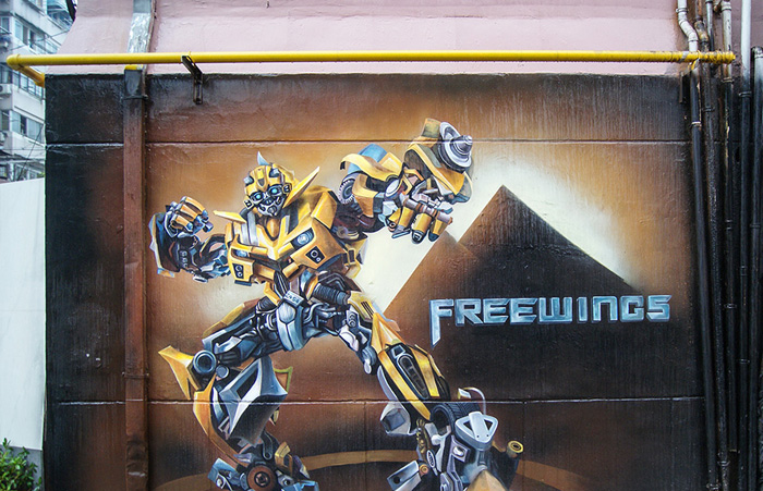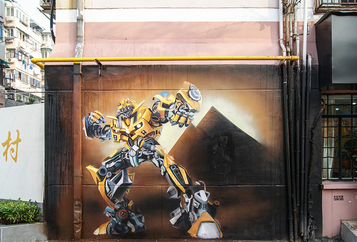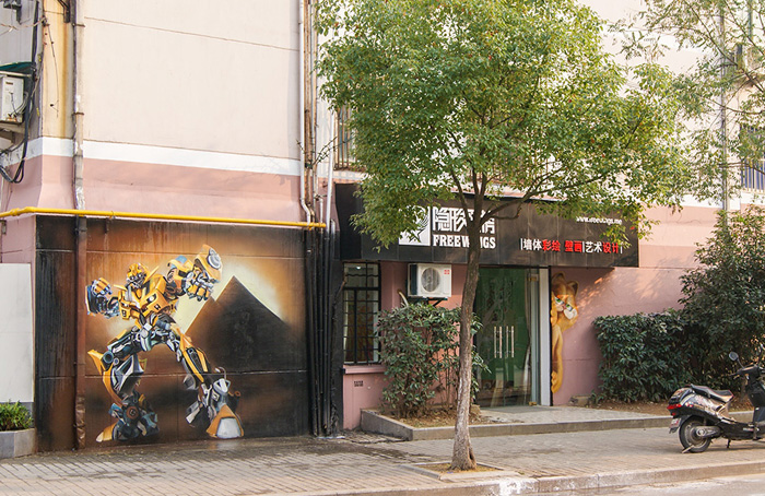 户外墙体手绘「变形金刚之大黄蜂」